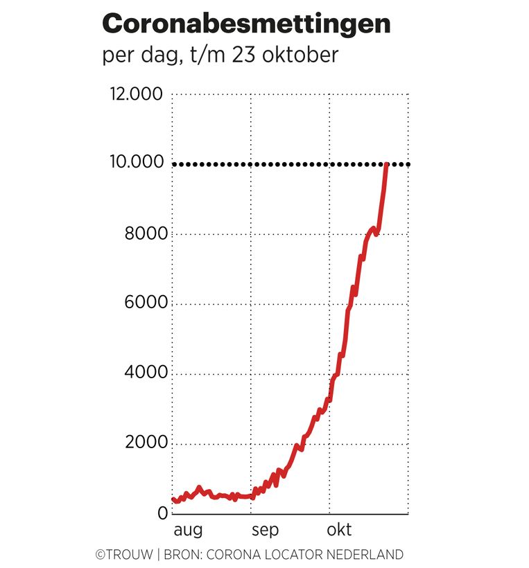 Aantal besmettingen verdubbeld in vergelijking met begin oktober.